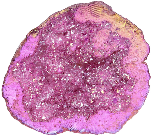 Angel Aura Quartz Geode Stone Titanium Coated Natural Rock Crystal Cluster Specimen for Reiki Healing Meditation Home Decor Fushcia